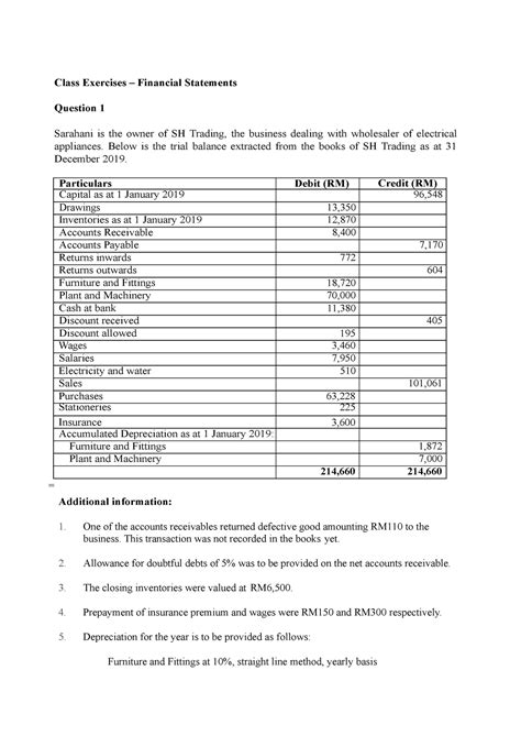 financial statements exercises with answers